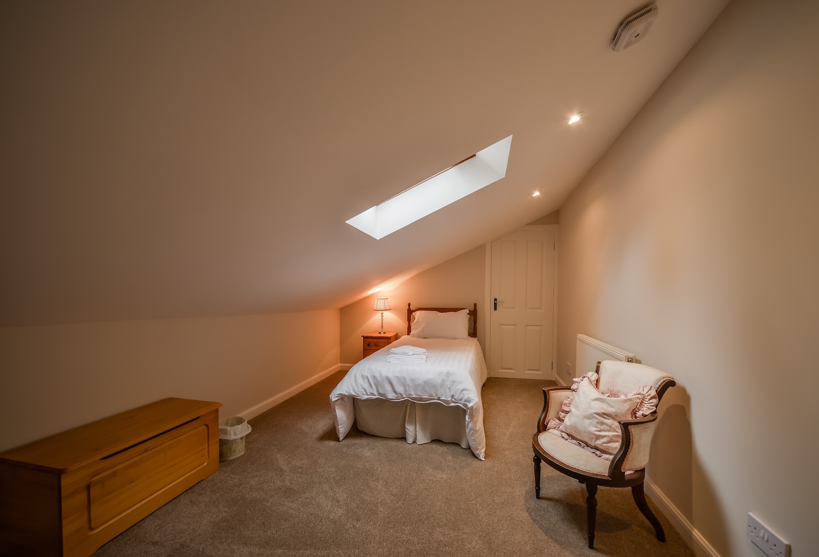 Cunninghame Cottage has, downstairs a living room with comfortable soft seating, a digital TV and adjoining open plan fully fitted kitchen which includes a washing machine, under the counter fridge and freezer, cooker and microwave oven. One twin bedroom, one double bedroom and a bathroom. Upstairs there is a twin bedroom and a large playroom (with a single bed in it).